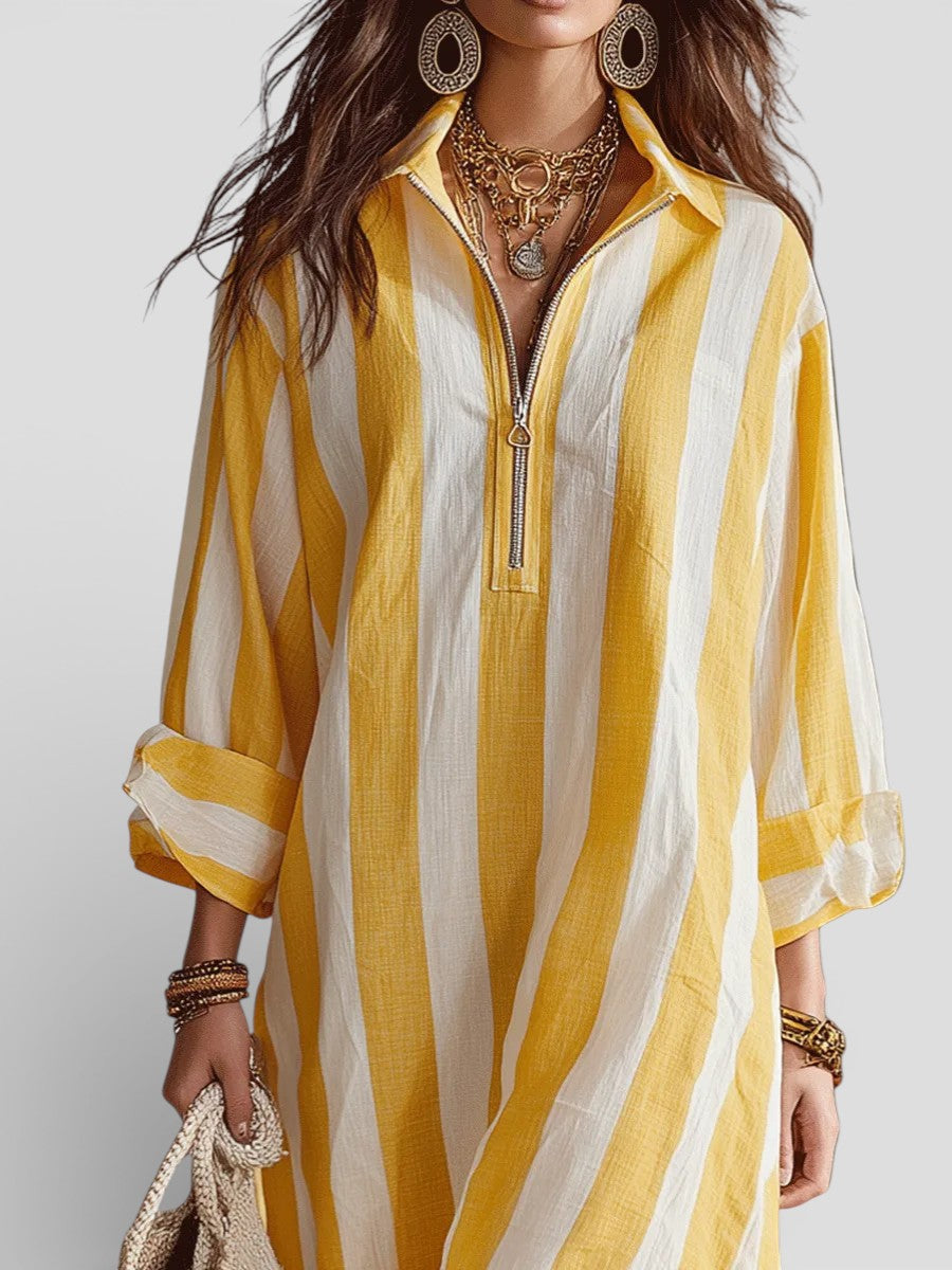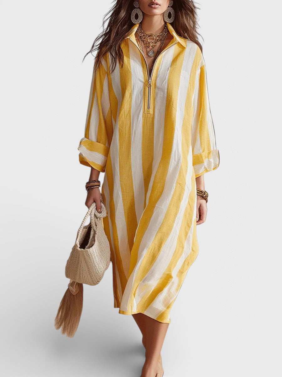 Ana | Midi haljina s žuto-bijelim prugama