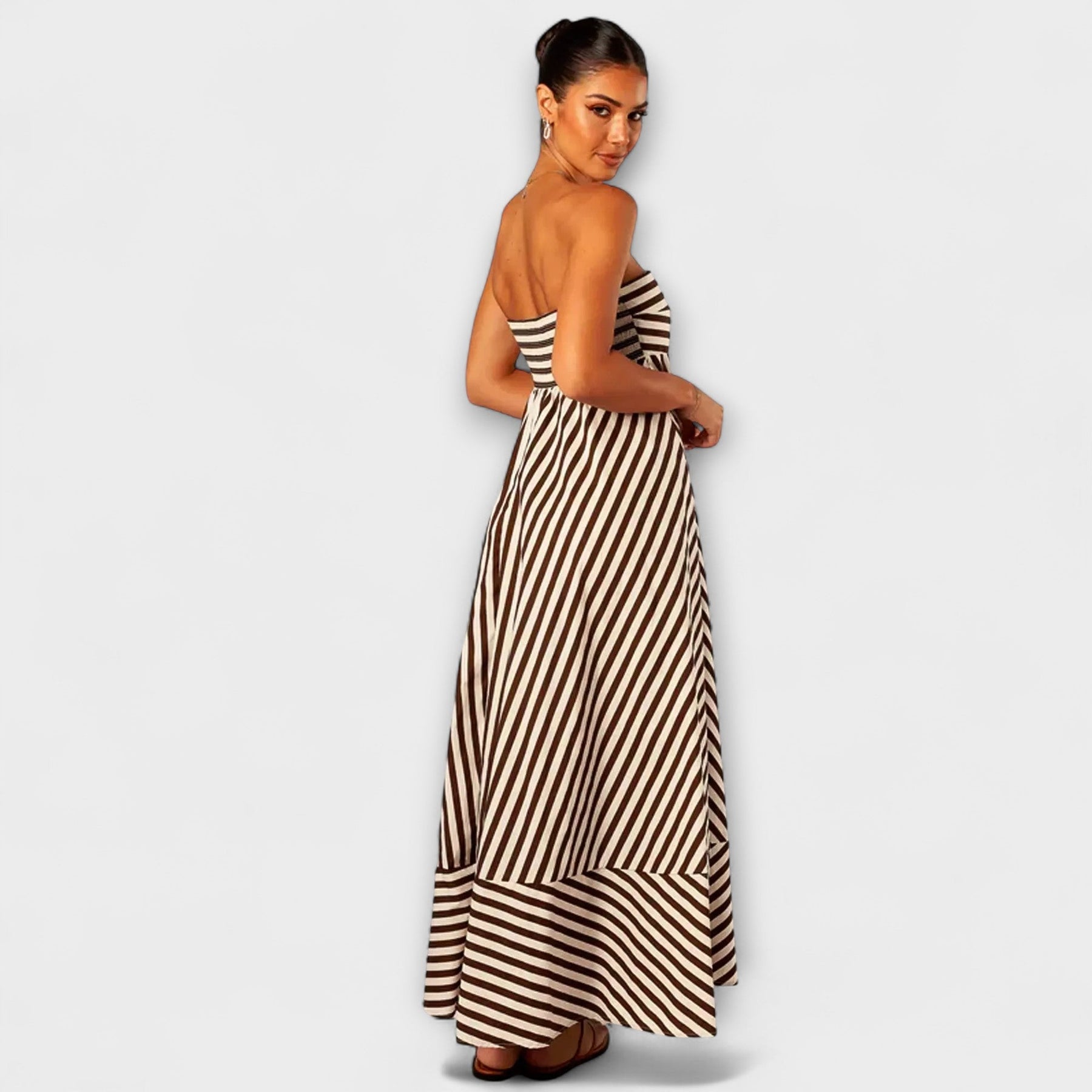 Preuzmite eleganciju i pokret s maxi haljinom Nocturnal Charm s volanima. Oblikovana za udobnost i stil, detalj s volanima na leđima naglašava vaš izgled, dok bočni nevidljivi patent zatvarač osigurava sigurno nošenje.