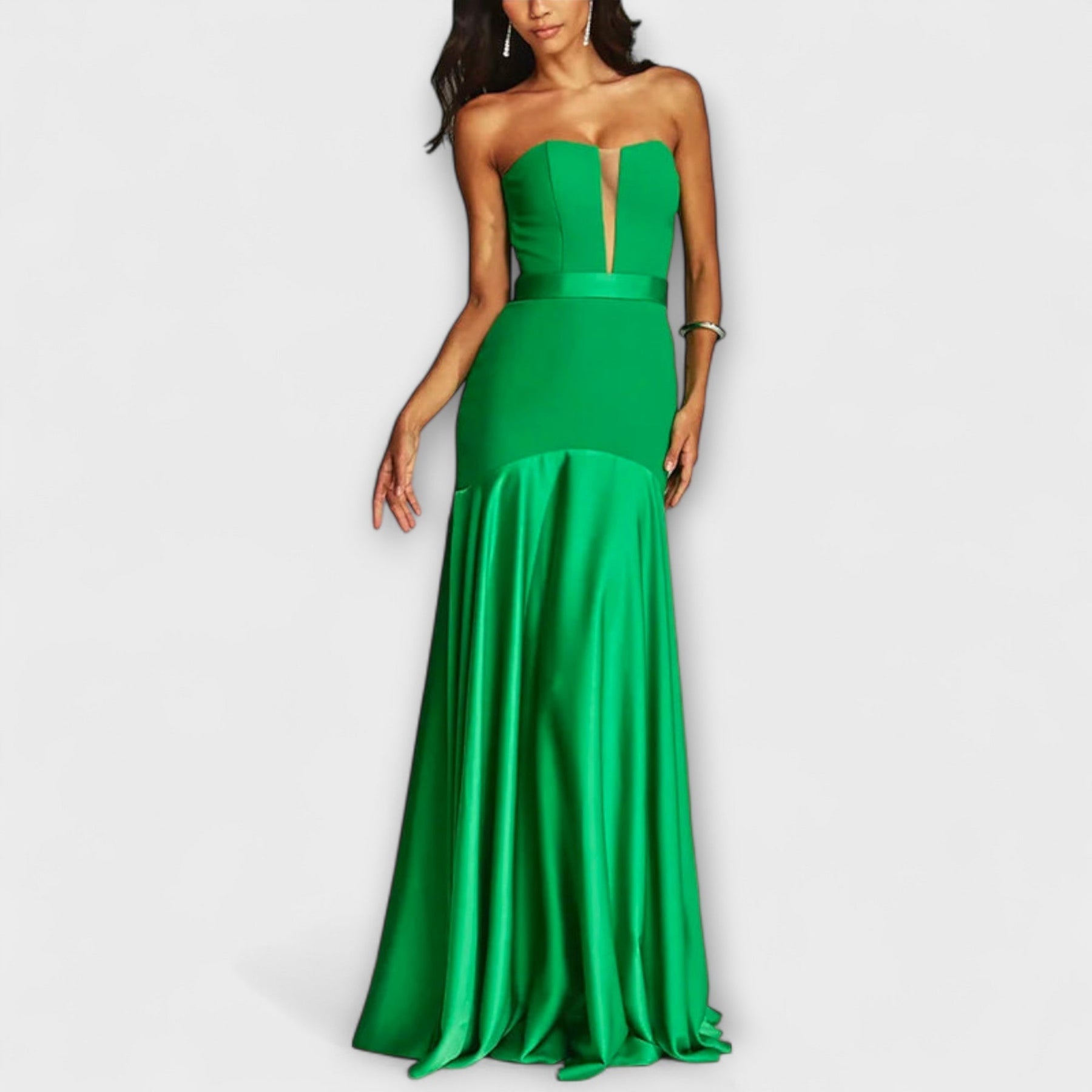 Otkrijte svoj stil s našom zapanjujućom maxi haljinom, koja je dizajnirana da ostavi dojam na svakom događaju. Napravljena od visokokvalitetnog poliestera, ova haljina ima elegantan dizajn s otkrivenim ramenima i dubok proziran V-izrez, koji vašem izgledu dodaje dašak elegancije.