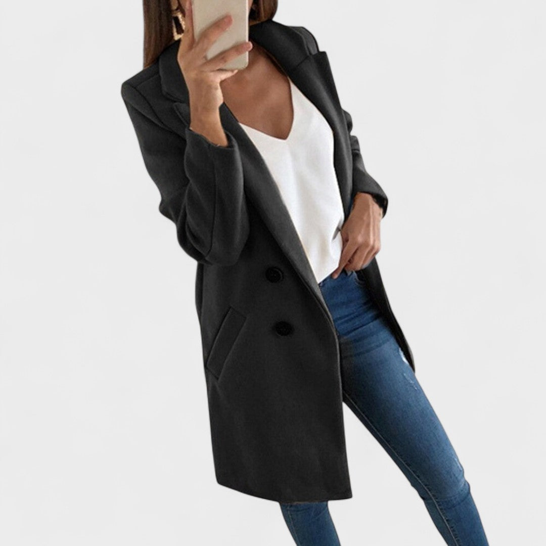 Mekani pamučni kaput s klasičnim reverima i čistim linijama podiže svaku kombinaciju — od traperica do poslovnih outfita. Ravni kroj i dužina do sredine bedra daju profinjen izgled, dok praktični bočni džepovi i kopčanje na dva gumba osiguravaju funkcionalnost i lakoću nošenja. Savršen za prijelazna razdoblja i svakodnevnu eleganciju.