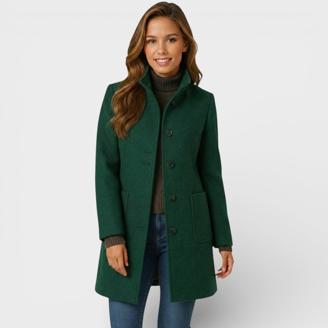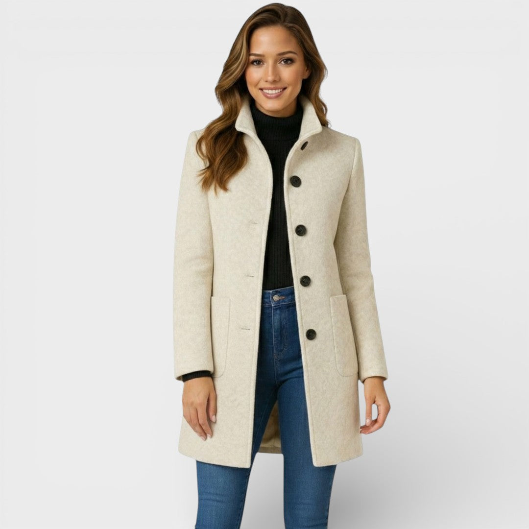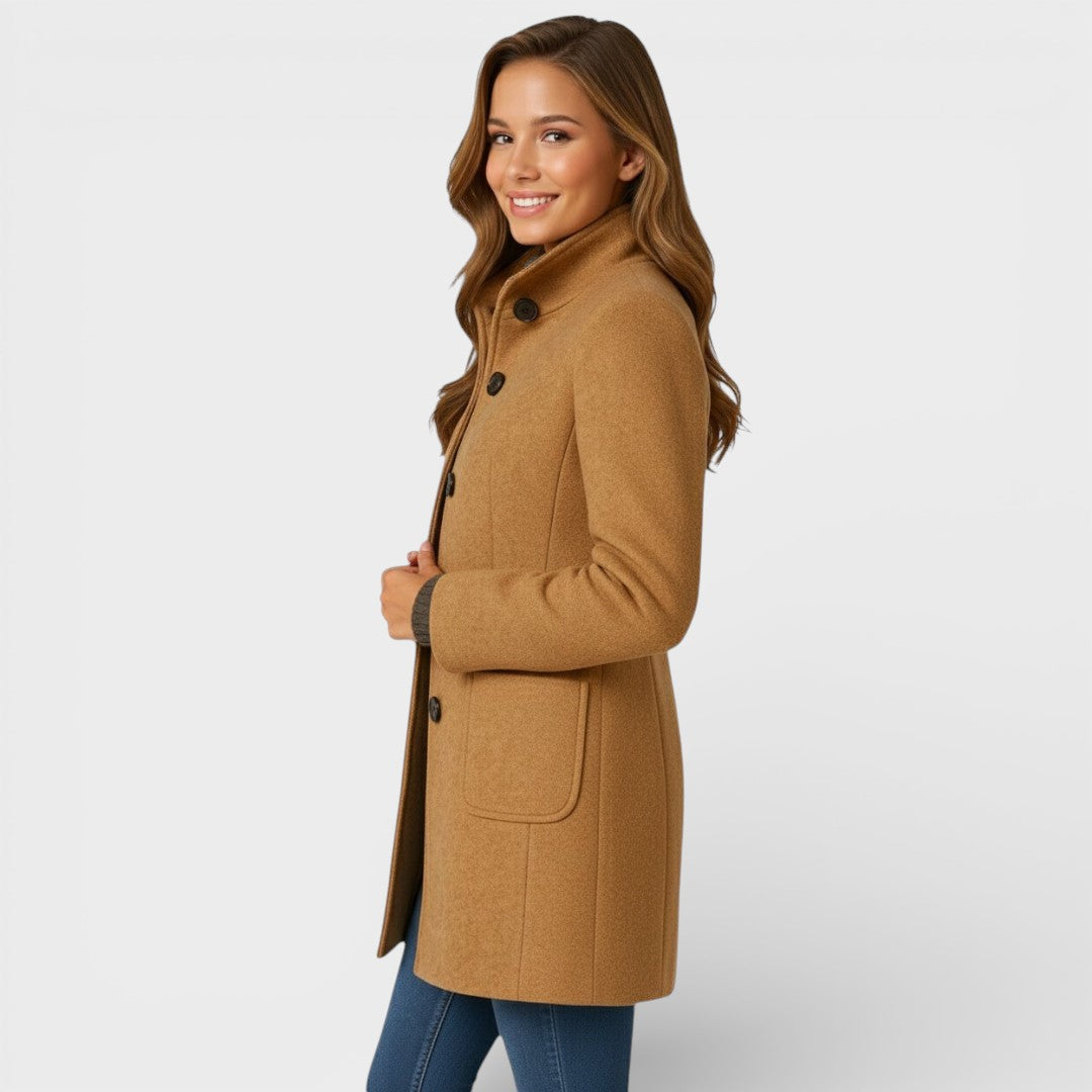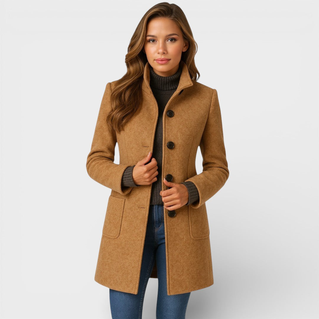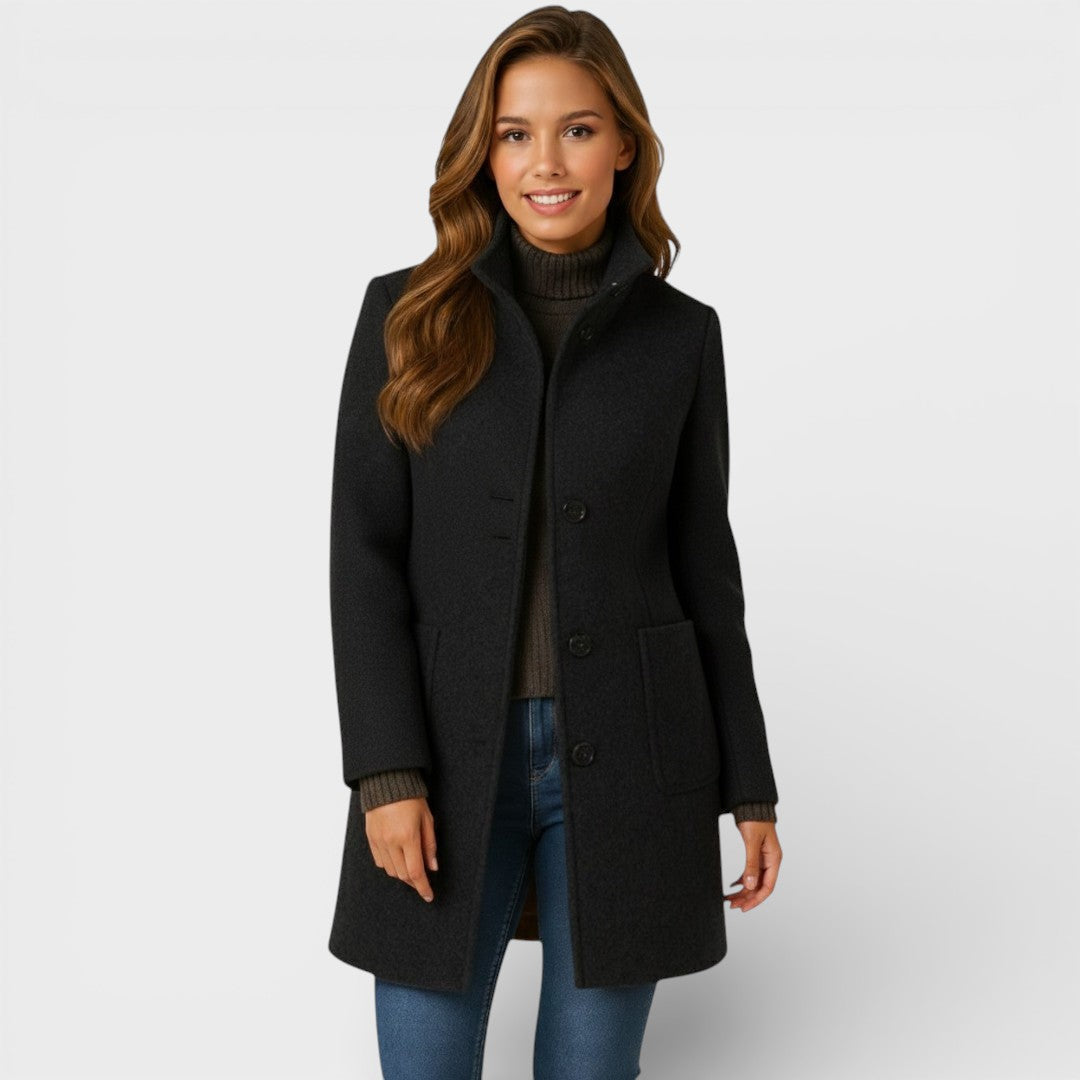 Katarina obavija vašu siluetu krojem koji ističe vaše prirodne linije dok vas štiti od hladnoće. Njegov visoki ovratnik ne samo da štiti od vjetra, već dodaje sofisticiranost koja podiže svaki outfit, bilo da je riječ o uredu, šetnji gradom ili elegantnom izlasku. Svaki detalj, od strukturiranih šavova do prednjih džepova, osmišljen je tako da se osjećate toplo, sigurno i stilizirano tijekom cijelog dana.