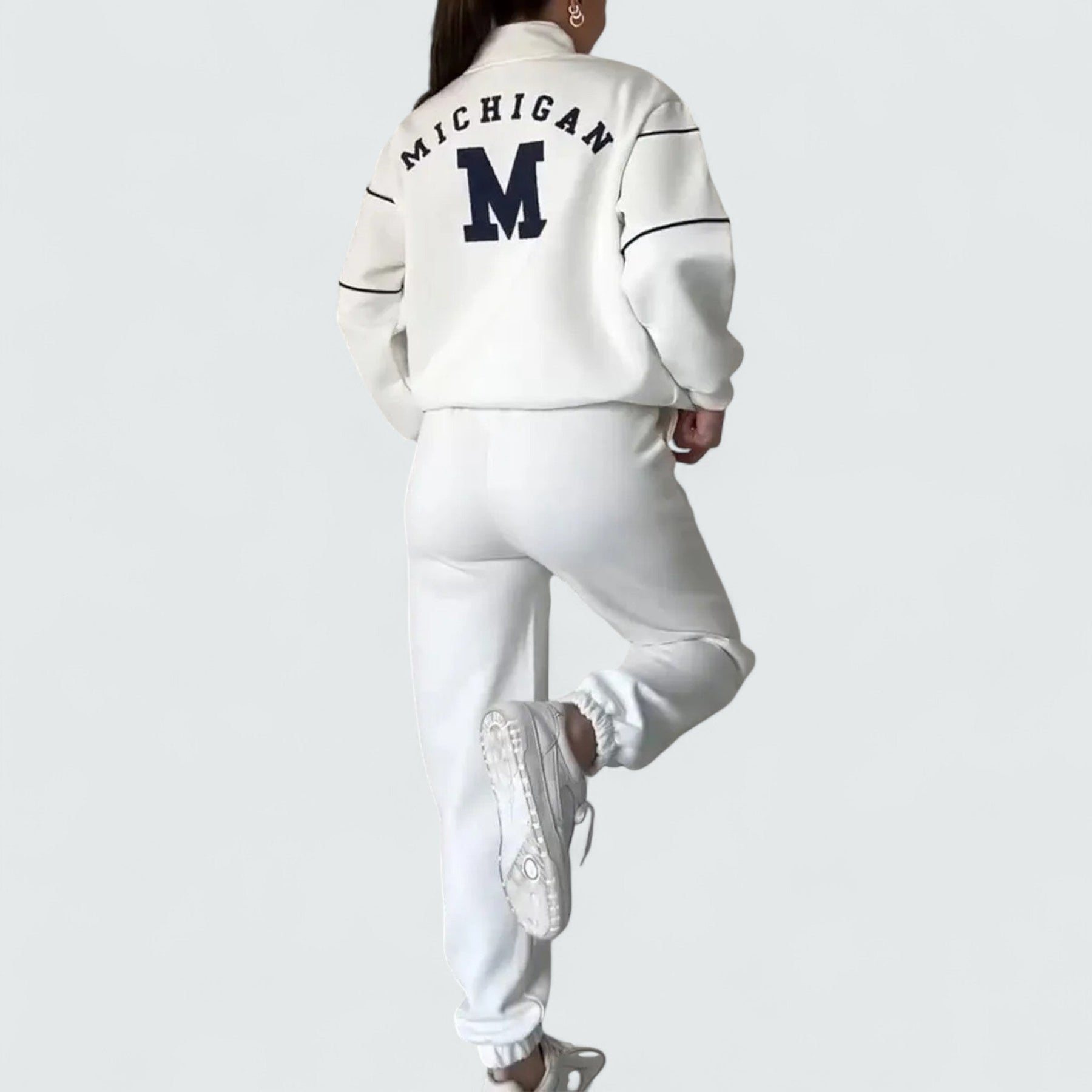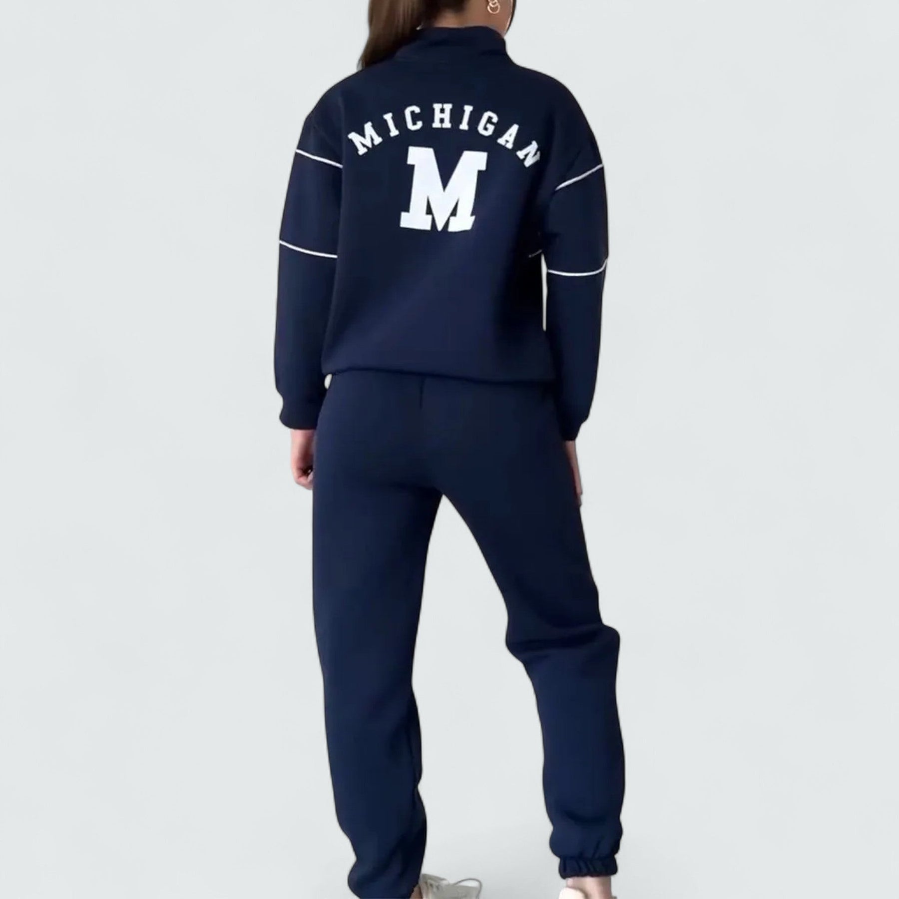 Opusteni, moderni komplet koji s lakoćom spaja udobnost i eleganciju. Savršen za kod kuće, slobodno vrijeme ili opuštene prilike.