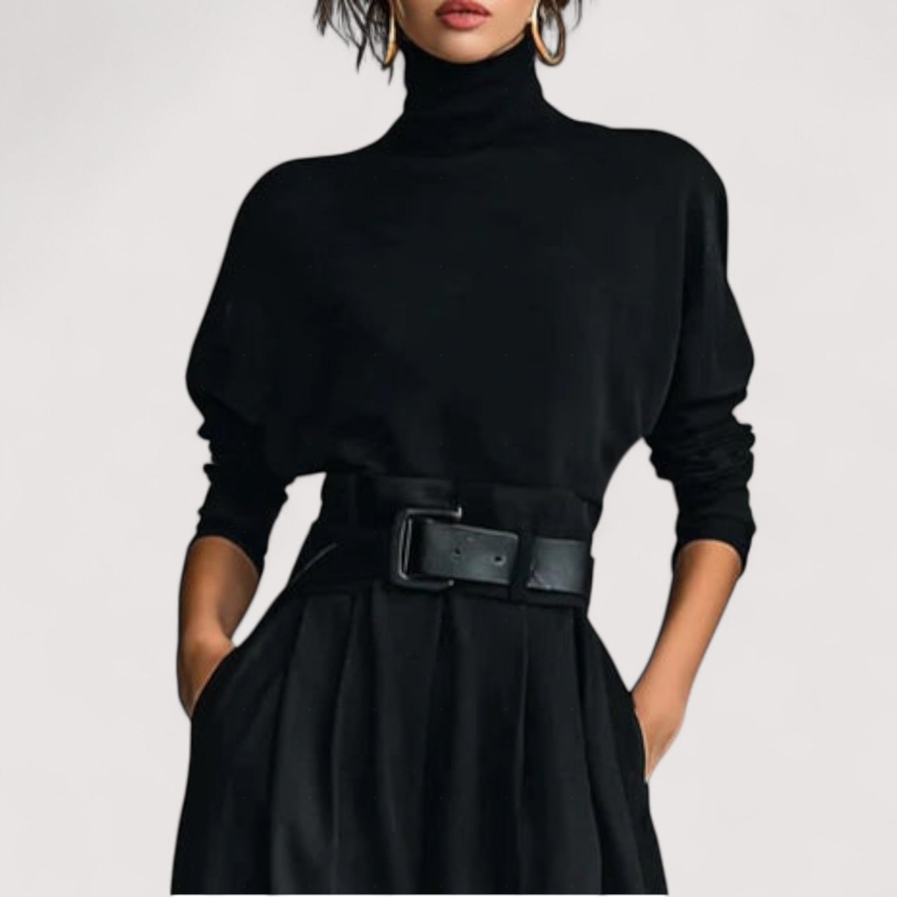 Orina™ | Crni set od dva dijela s majicom dugih rukava s dolčevita ovratnikom i ravnim hlačama