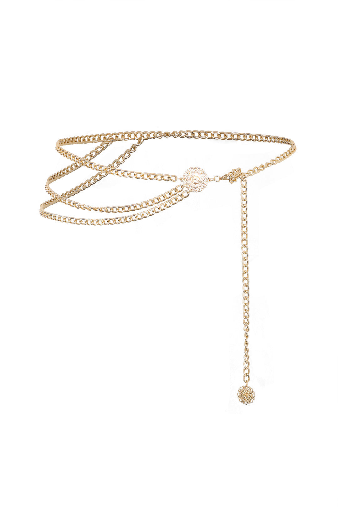 Impozantan i sofisticiran, Lanac za Struk u Slojevima osmišljen je za naglašavanje struka s beznapornim glamourom. S višestrukim delikatnim lancima, lijepo se drapira preko haljina ili stilova visokog struka, dodajući definiciju i sjaj svakom posebnom izgledu.